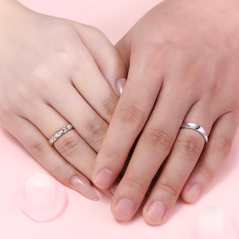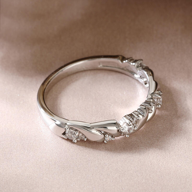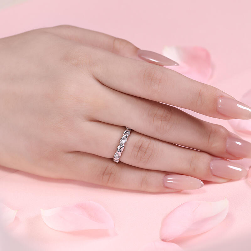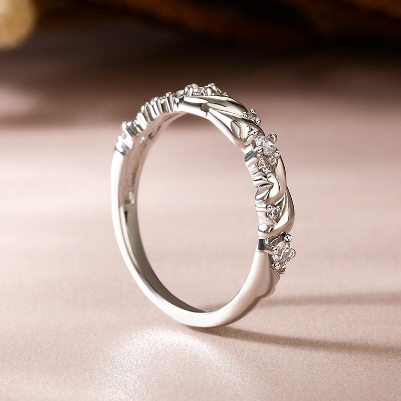 On your wedding day, seal your vows to her with this stylish wedding band. It features a heart-shaped design with sparkling round stones. A meaningful look of love, this wedding band will capture her heart. Each time she glances at this lovely band, her thoughts will turn to you.