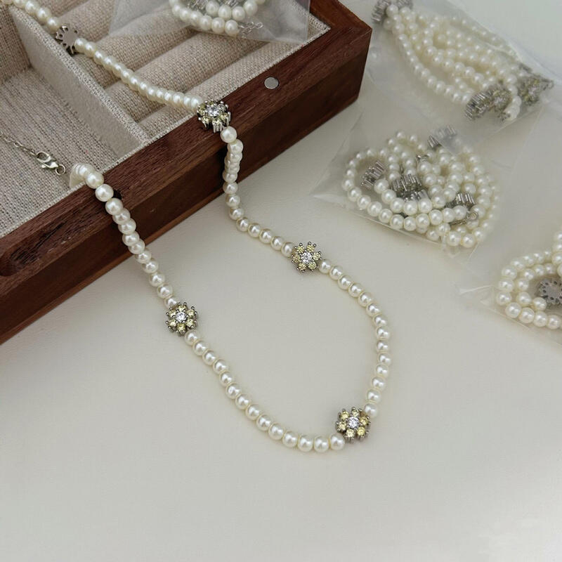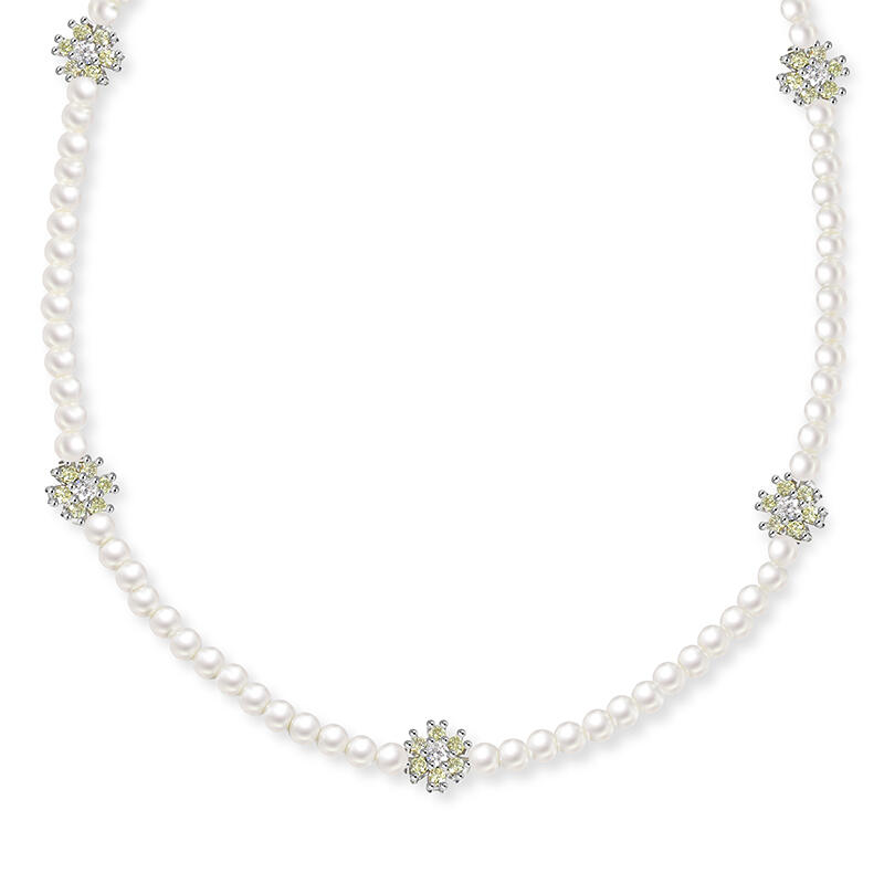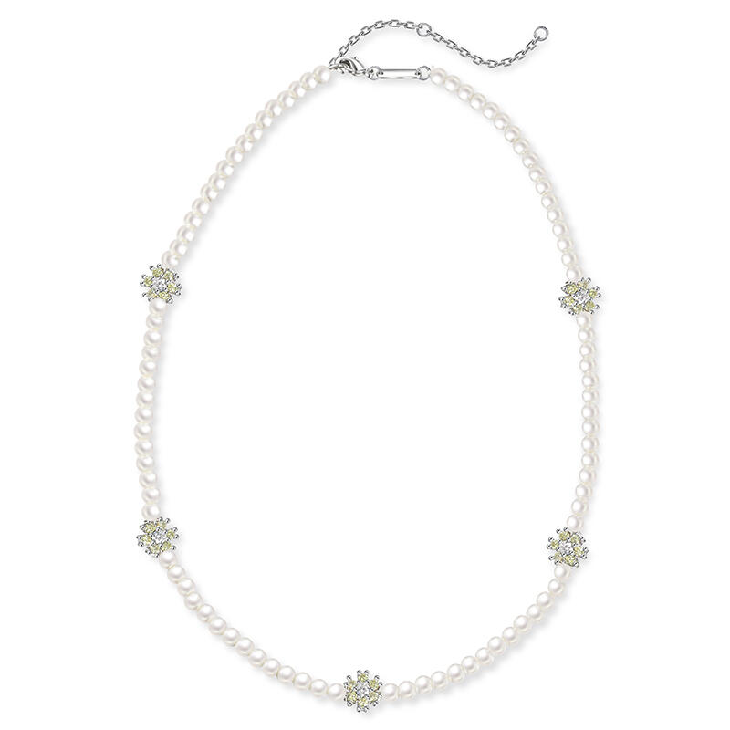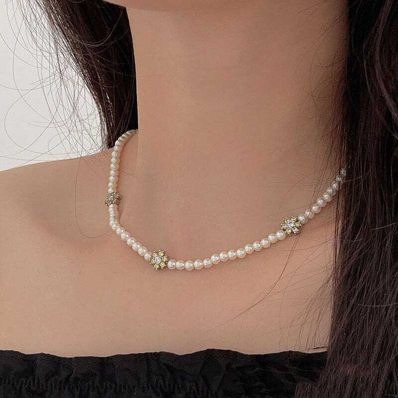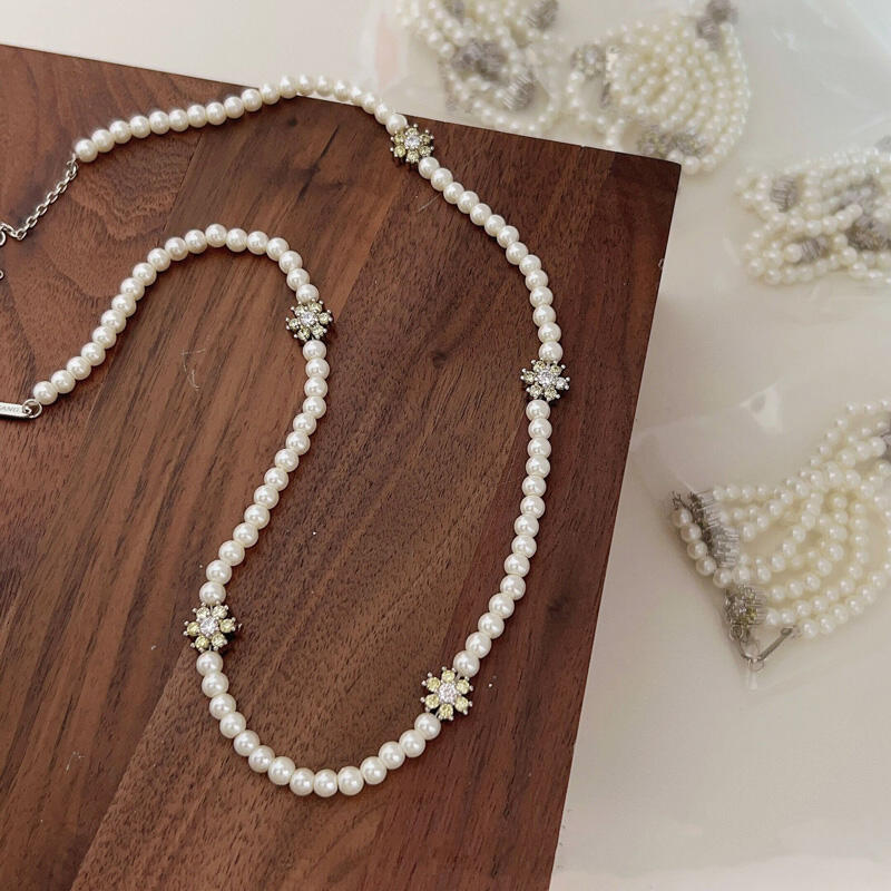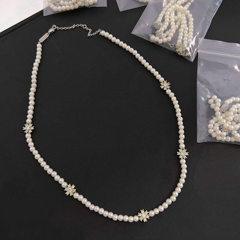 Elegance personified, this fashion necklace effortlessly captures the beauty and grace of a winter wonderland. Each lustrous pearl symbolizes purity and sophistication, while the delicate snowflake design adds a touch of enchantment. Crafted with meticulous attention to detail, this extraordinary necklace is a testament to fine craftsmanship and refined taste. The shimmering stones delicately embrace the radiant pearls, creating a harmonious blend of luxury and femininity. Wear this captivating necklace to make a statement at any occasion. Whether it's a glamorous evening affair or a sophisticated daytime event, this piece will effortlessly elevate your style and leave a lasting impression.