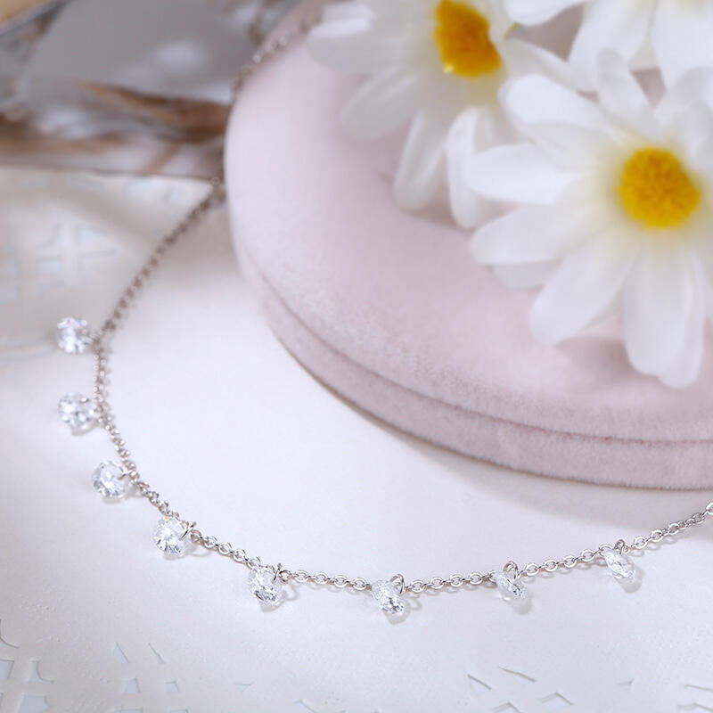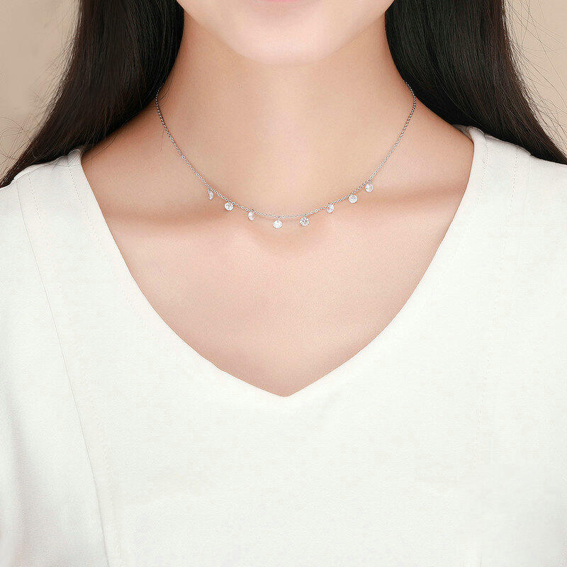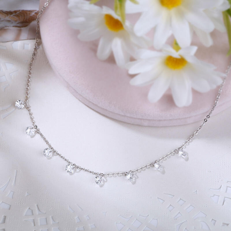 Jeulia "As Unique as You" round cut sterling silver necklace, with eight round cut stone in the necklace, sparkling stars in your necklace. This style sterling silver necklace is very suitable for your girl friends, classic and fashion brilliant. When outside in the daily life or traveling on the way, you will be outstanding in the crowd.