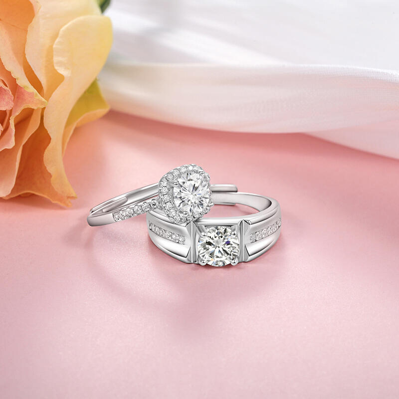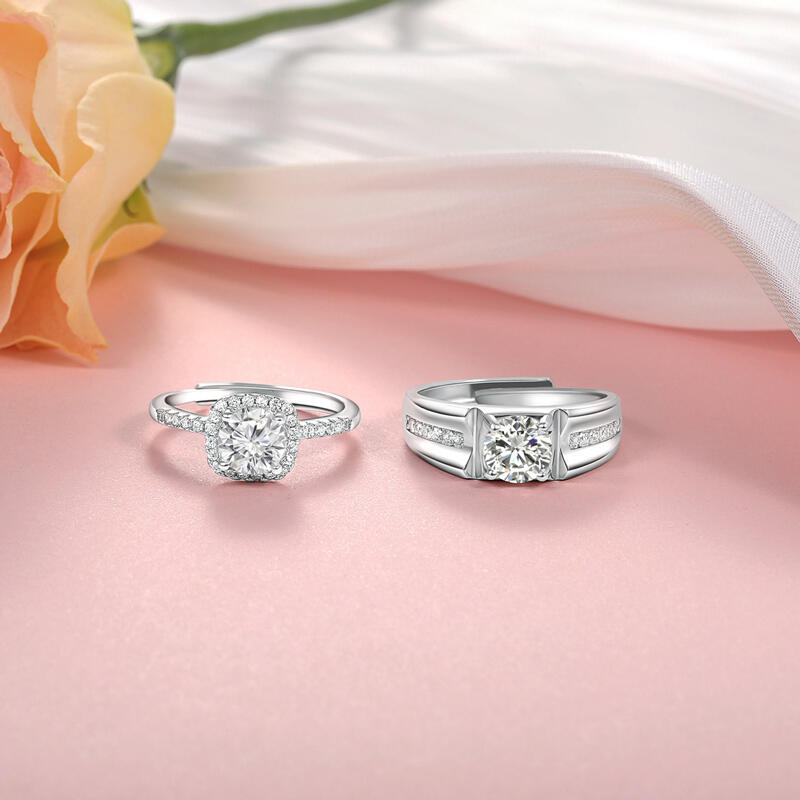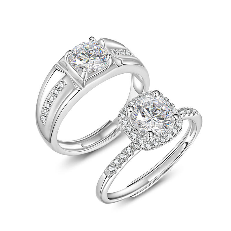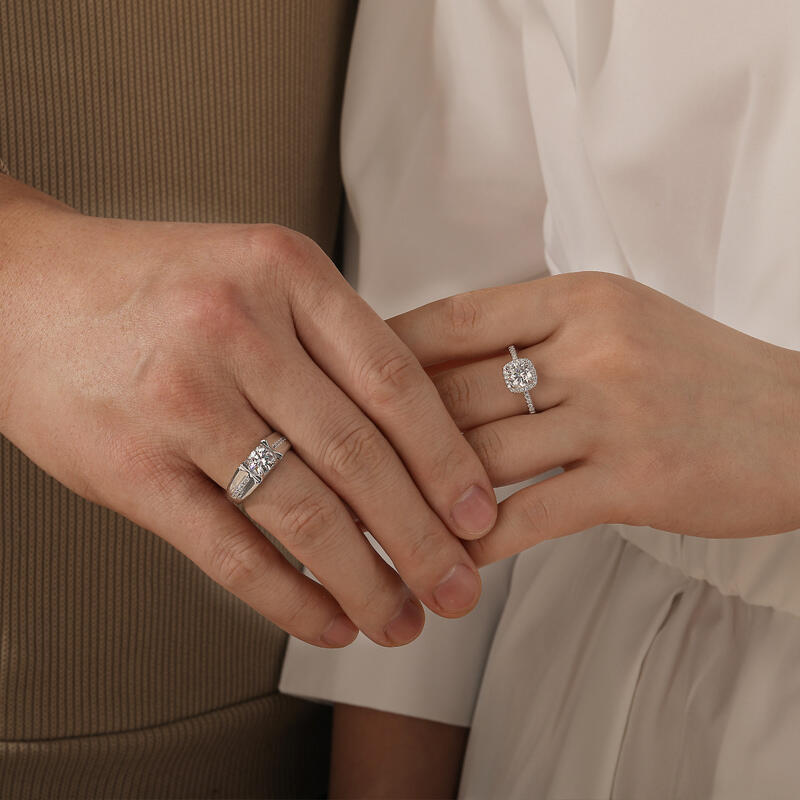 This classic couple's ring set embraces romance and precious emotions, with both men's and women's wedding rings featuring classic round main stones that emit a radiant glow, symbolizing our heartfelt love. With the Halo design, it is like countless blessings and guardians surrounding us, witnessing the beauty of our love. The inlaid design, on the other hand, will treasure our vows forever, with the precious moments we have experienced together glittering and flowing between each small stone, shining brightly.