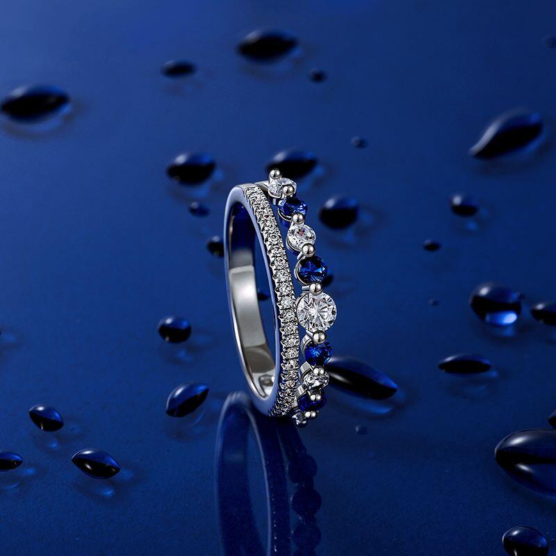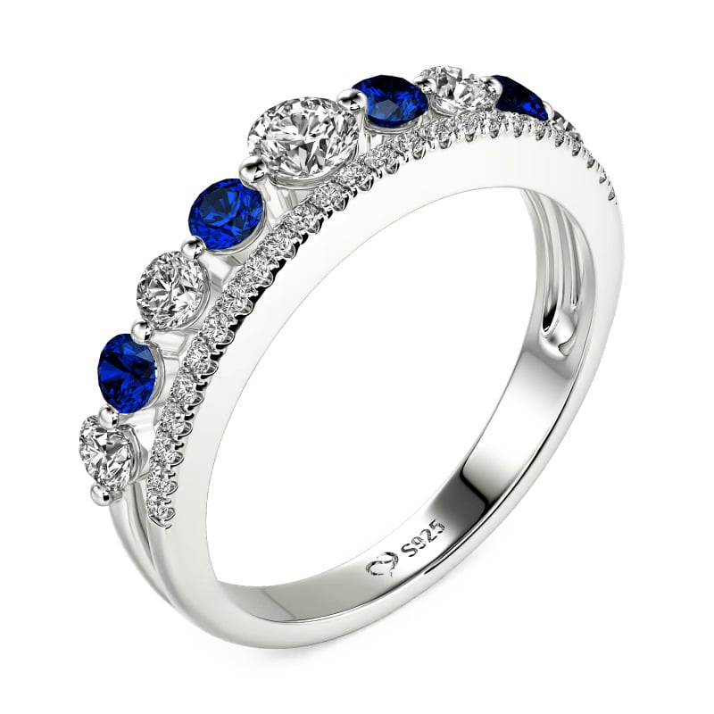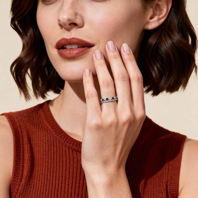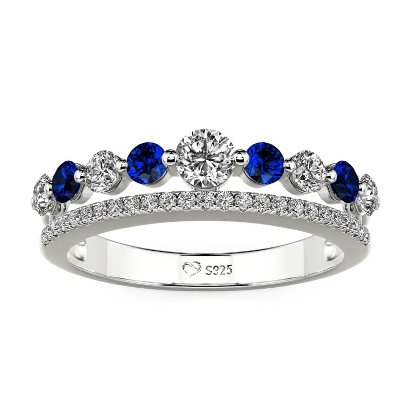 Elevate any moment with the Jeulia women's custom double row round cut wedding band. One row alternates large and small round stones, with customizable hues to craft a tailored color contrast. It balances minimalist elegance with subtle, playful color detailing: ideal for pairing with an engagement ring on your big day, or adding understated sparkle to casual outfits. A versatile blend of custom charm, double-row glow, and refined color contrast.