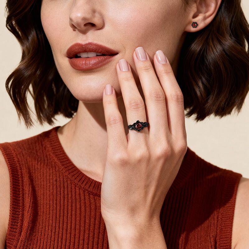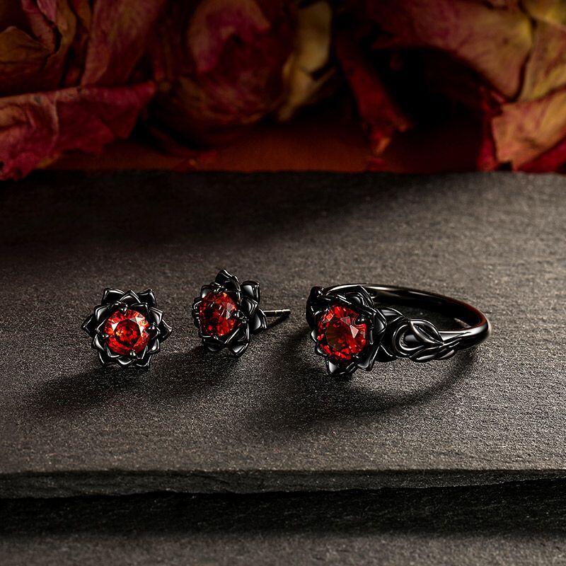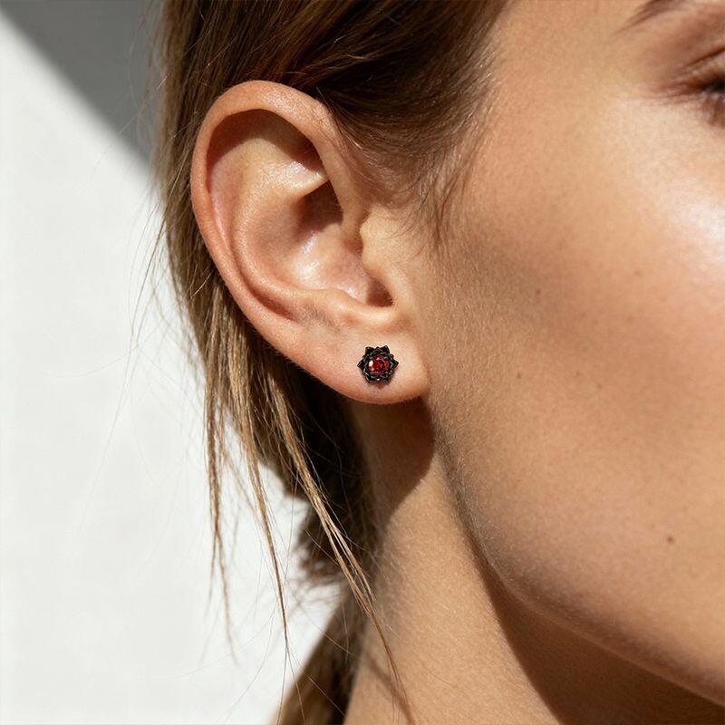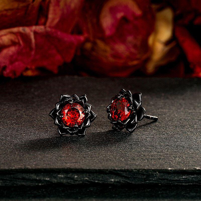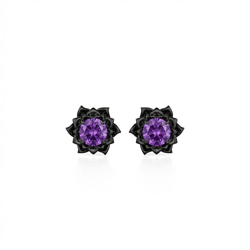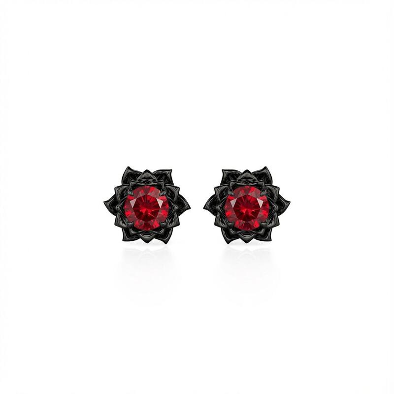 The Jeulia Gothic Black Floral Custom Round Birthstone Earrings offer a striking blend of elegance and edge, perfect for those who appreciate unique jewelry. Crafted from high-quality sterling silver, these black earrings feature round-cut stones that radiate a captivating boldness, surrounded by intricate floral detailing. The gothic design beautifully intertwines dark elegance with a hint of romance, making these lotus earrings ideal for special occasions or everyday wear. Their vibrant red stones provide a stunning contrast against the black, drawing attention and enhancing your style. Whether you're dressing up for a night out or looking to add a touch of individuality to your everyday ensemble, these custom birthstone earrings are a powerful statement piece. Embrace your unique style with the Jeulia Round Cut Birthstone Black Floral Gothic Earrings, an accessory that reflects both strength and beauty in every detail.