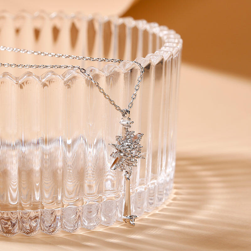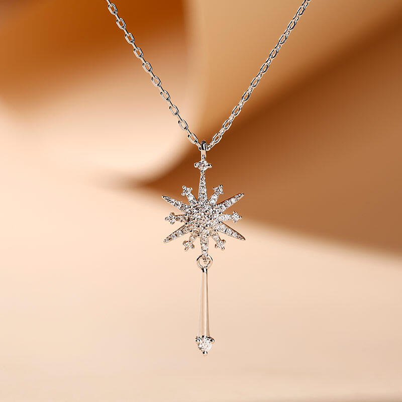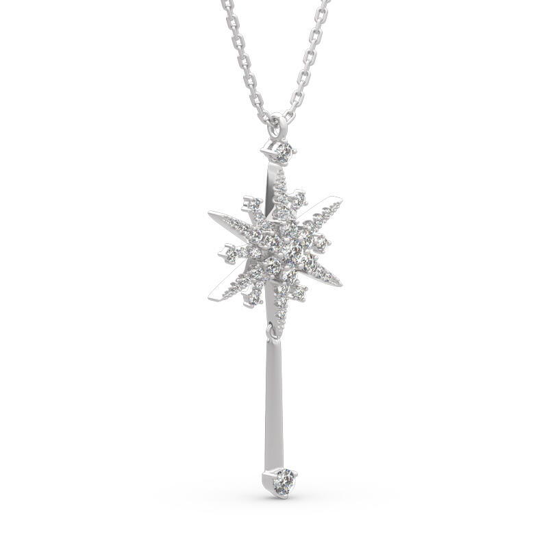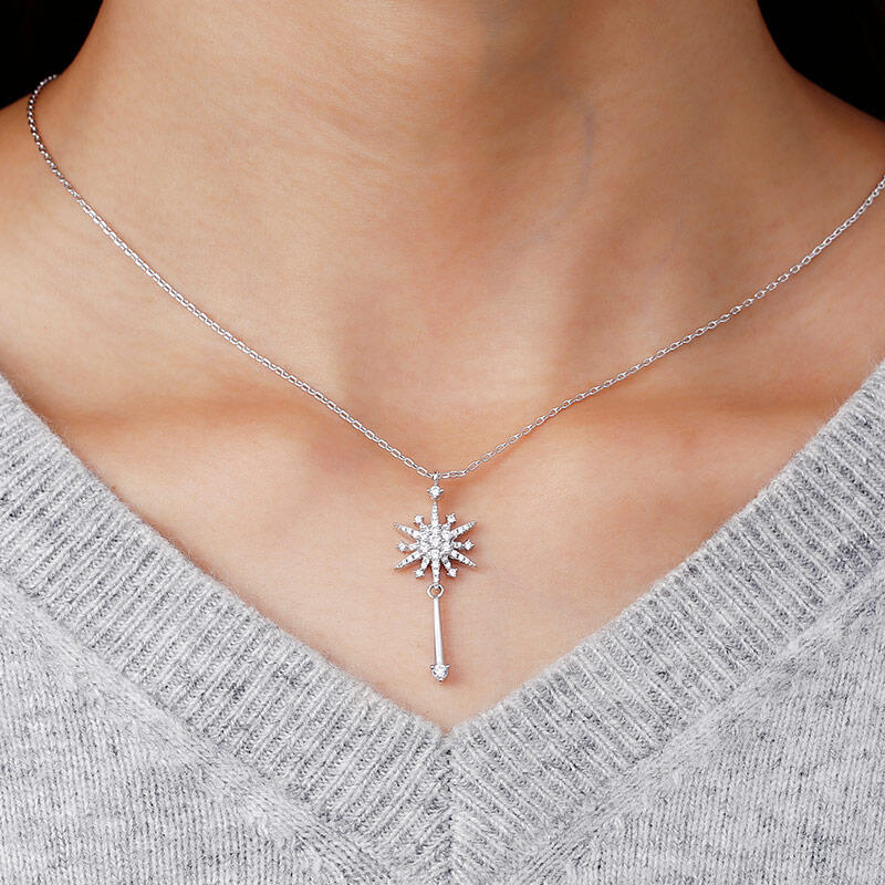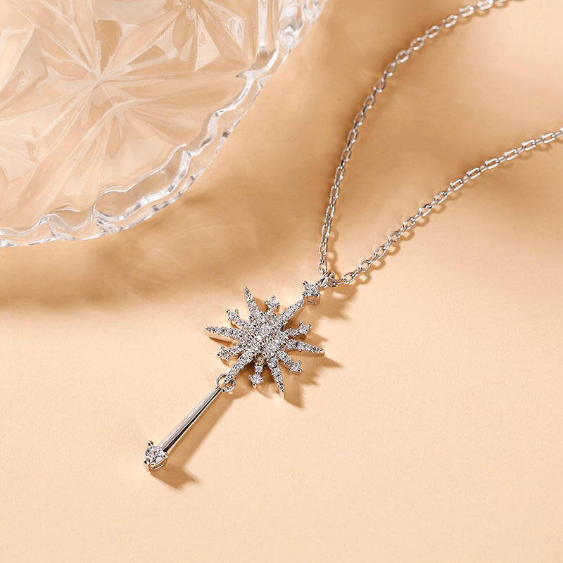 This dainty north star pendant captures the beauty of the skies, making it the perfect gift for the brightest star in your life. This necklace has a north star that features shinning white stones. Delicate and charming, the north star is suspended from a delicate silver chain. Made especially for you, this necklace will be an eye-catcher everywhere.