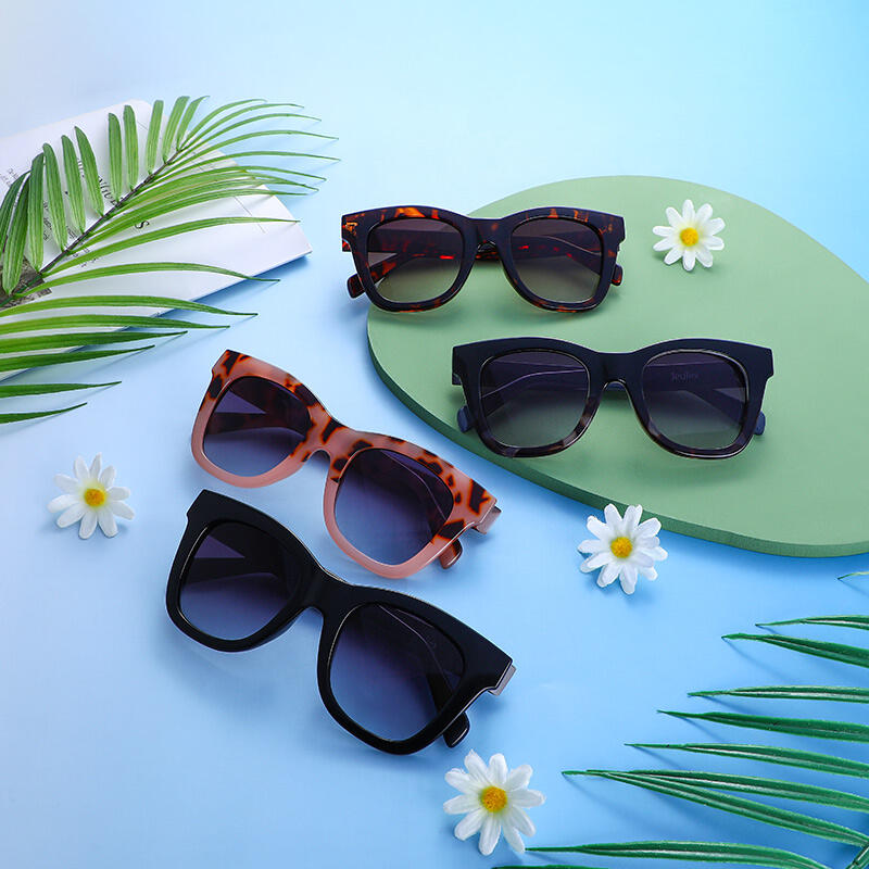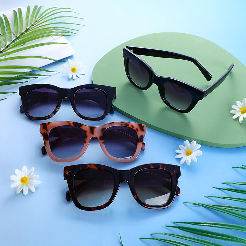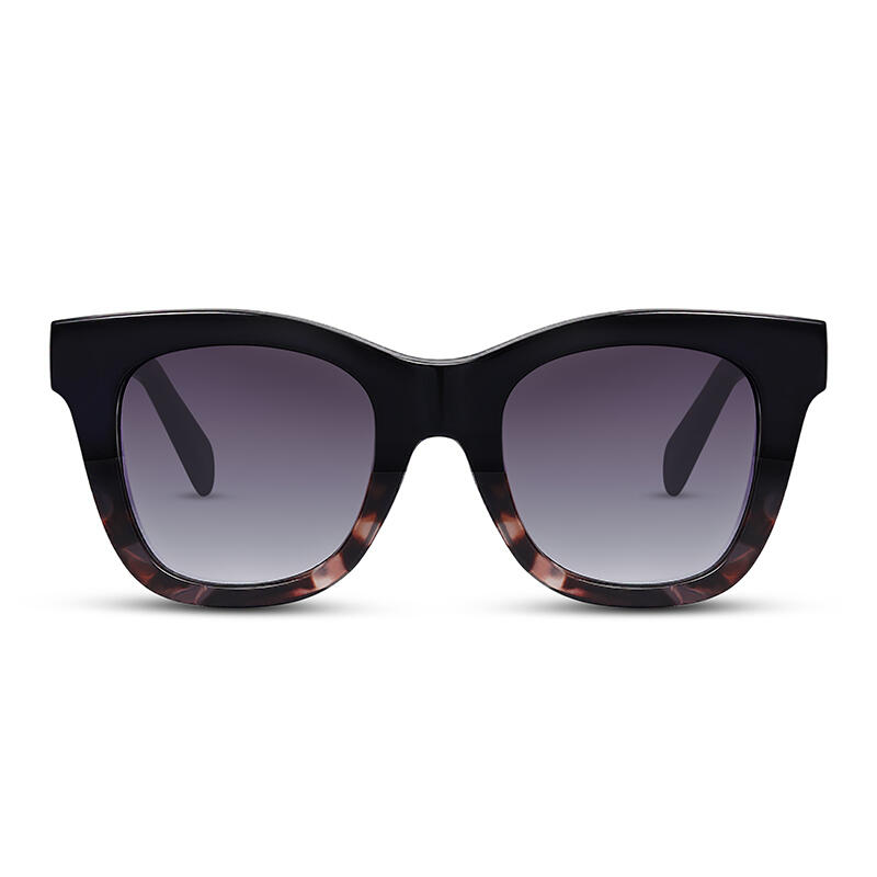 These square shaped frames in the retro style weave their way into modern fashion for a look that is permanently in the now. Opt for timeless delicacy with these eye-catching sunglasses, which have four color match choices. Our spotted tortoiseshell design and gradient grey/brown lens add a retro feel.
