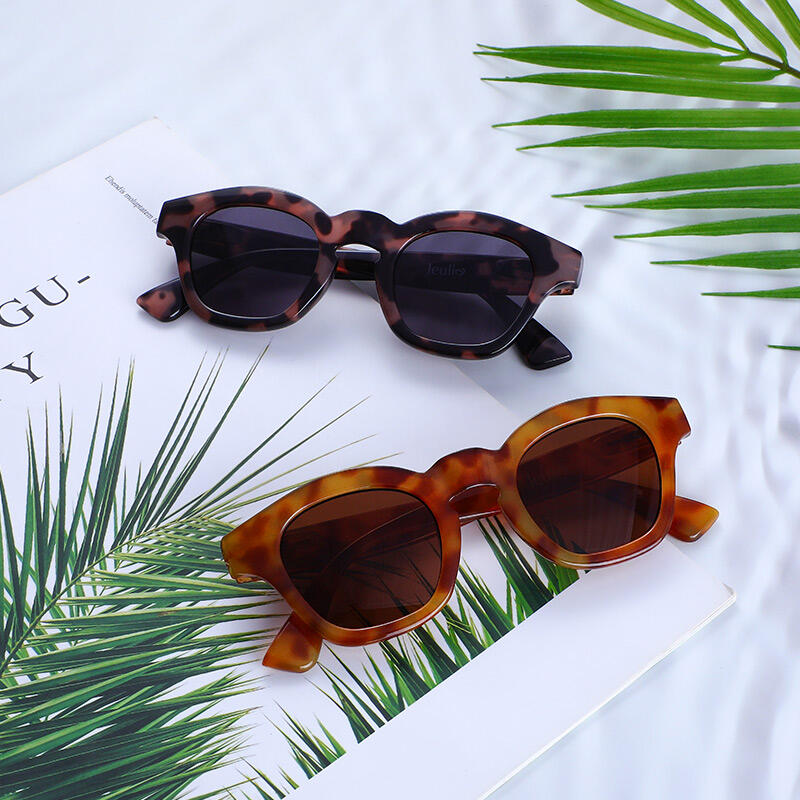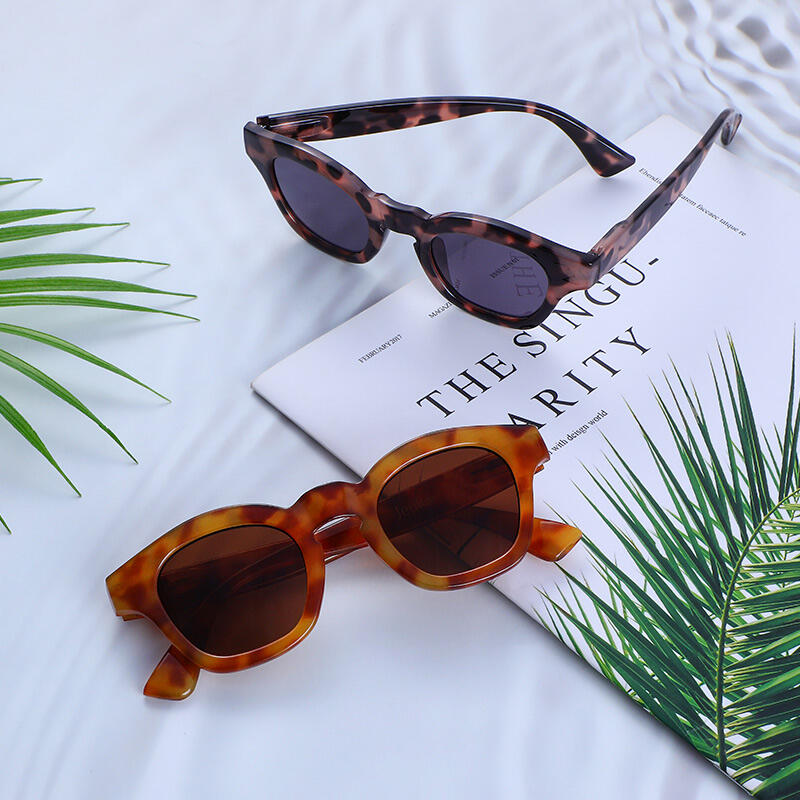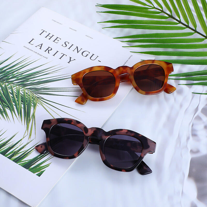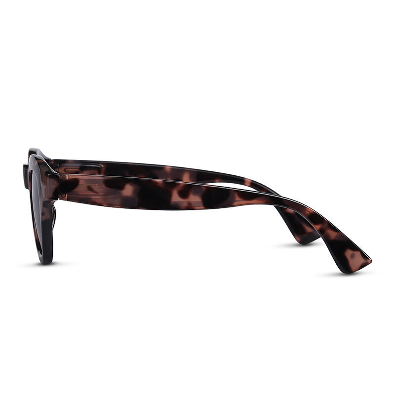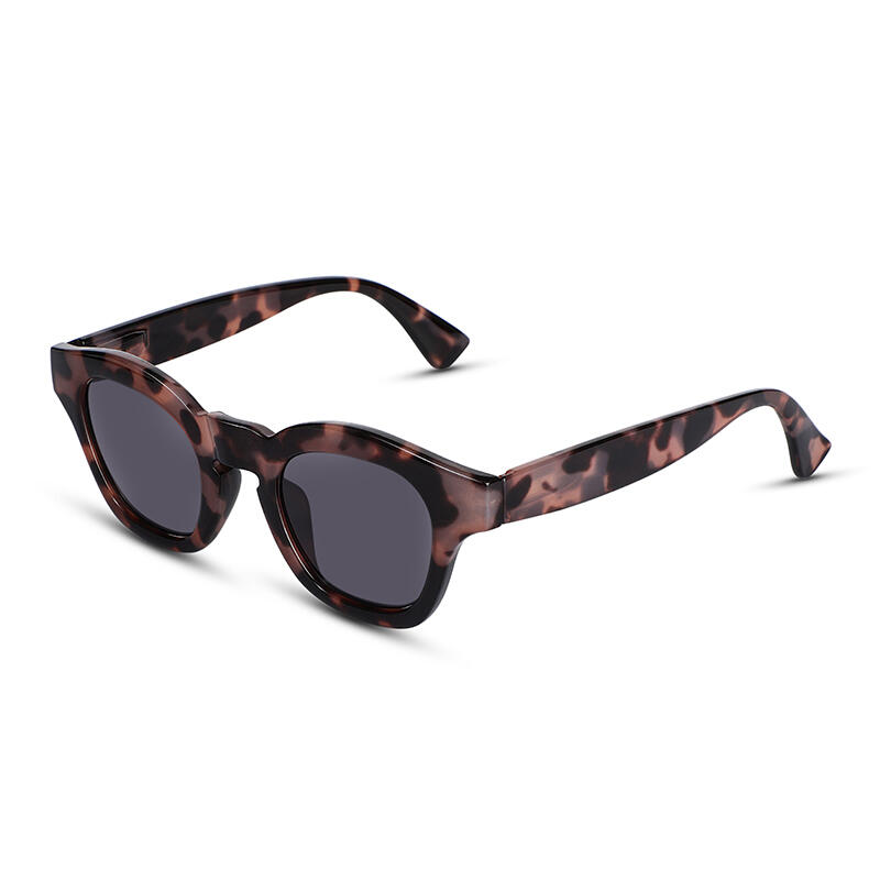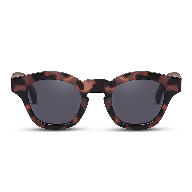 These full-rim square sunglasses are designed in a tortoiseshell finish, matched with brown/grey tinted PC lenses. The frames and temples are in the same colors, a modern twist on a retro classic. These sunglasses will be your new essential for after hours to a cocktail party, or for a daytime stroll around the city.