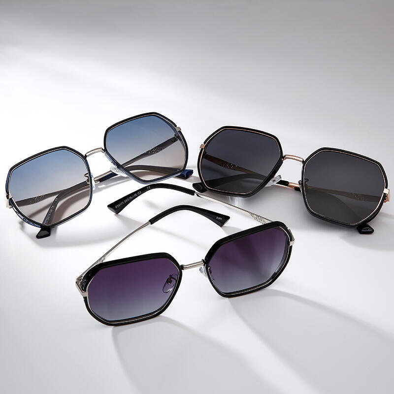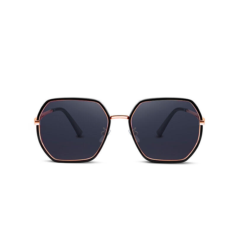 Jeulia "Impromptu" Hexagon Black Polarized Women's Sunglasses