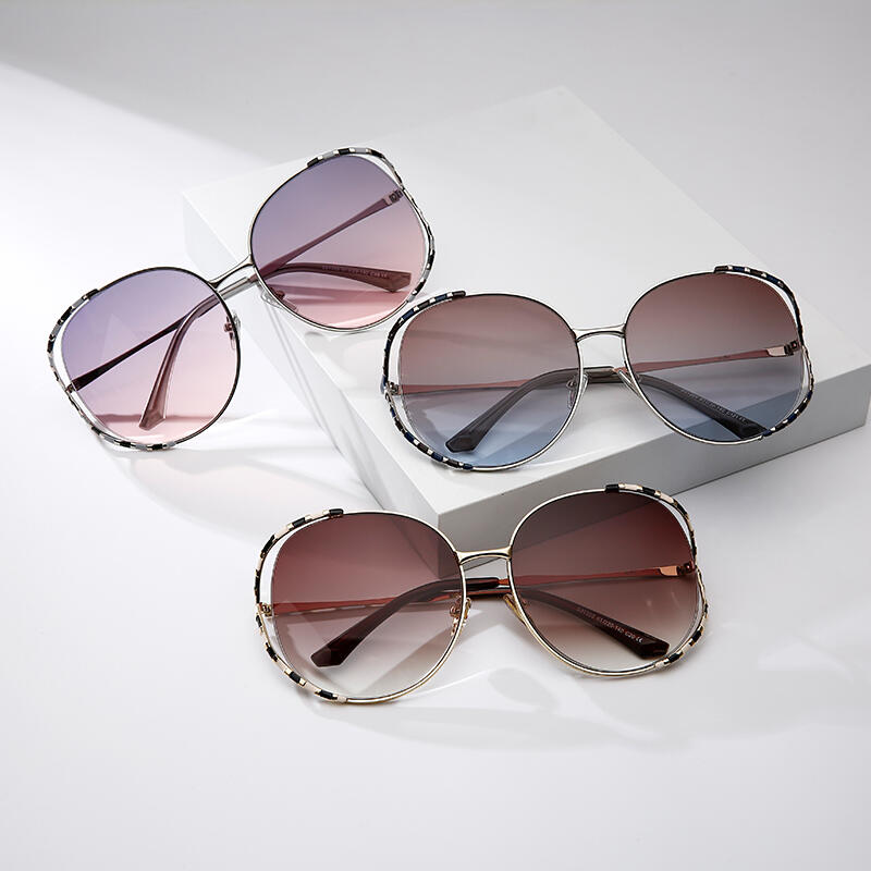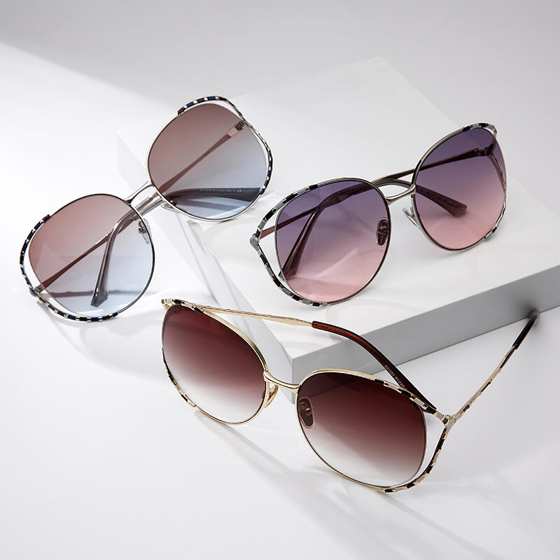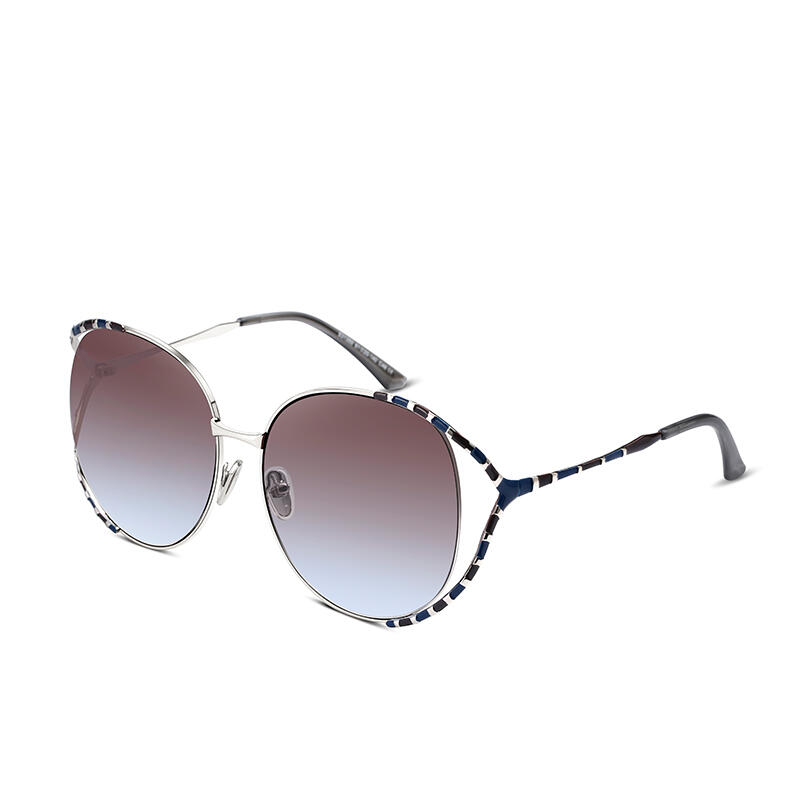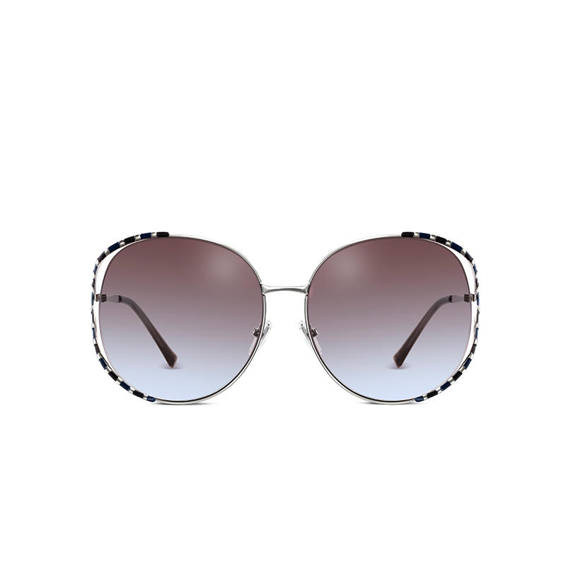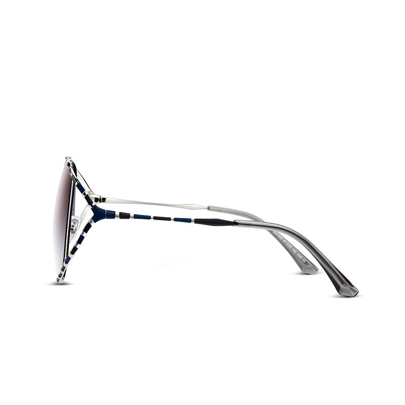 A distinctive style marks these creative and cheerful frames inspired by the stripes of wild animals. This unique pair of sunglasses are made in golden-finish/silver-finish metal with black lacquer spots in a style of curvaceous openwork frame. The lenses are TAC polarized, providing high contrast and vivid color. You can choose from brown, grey-pink, and brown-blue colors to display your personality and fashionable taste.