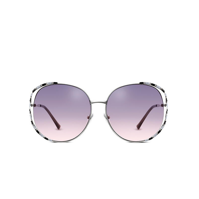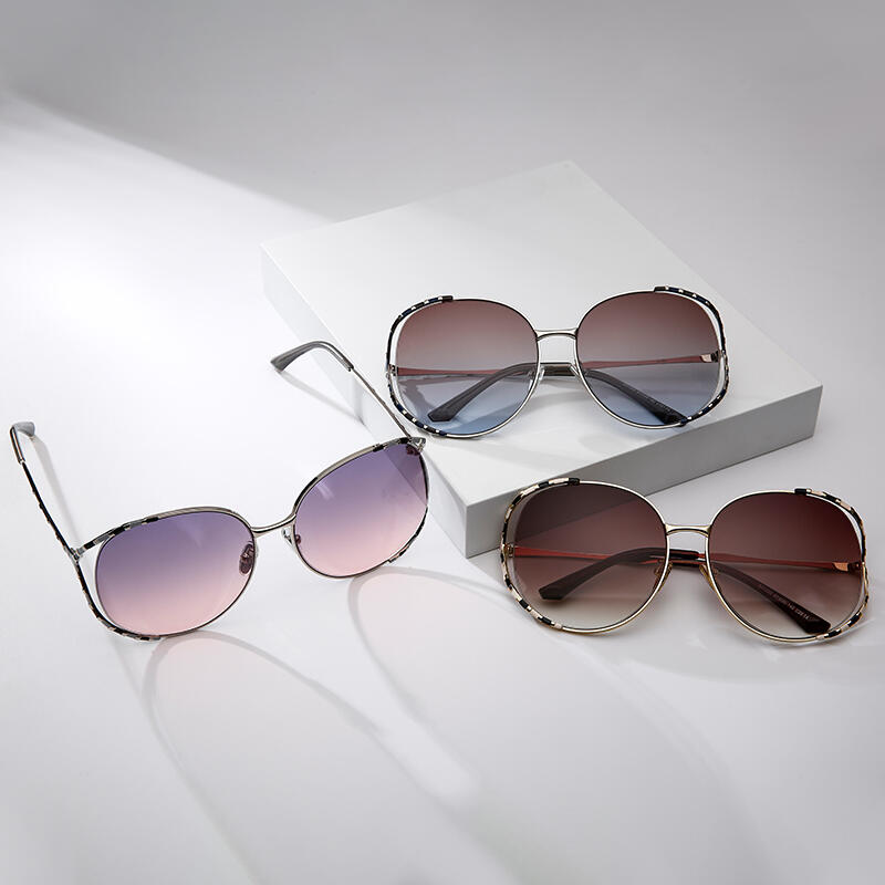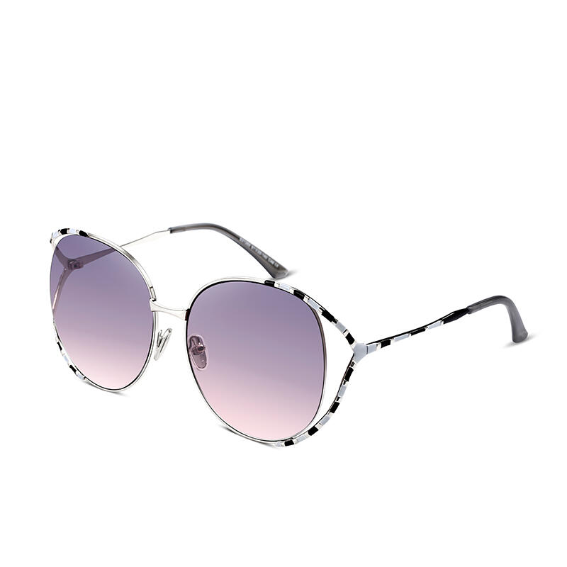 A distinctive style marks these creative and cheerful frames inspired by the stripes of wild animals. This unique pair of sunglasses are made in golden-finish/silver-finish metal with black lacquer spots in a style of curvaceous openwork frame. The lenses are TAC polarized, providing high contrast and vivid color. You can choose from brown, grey-pink, and brown-blue colors to display your personality and fashionable taste.