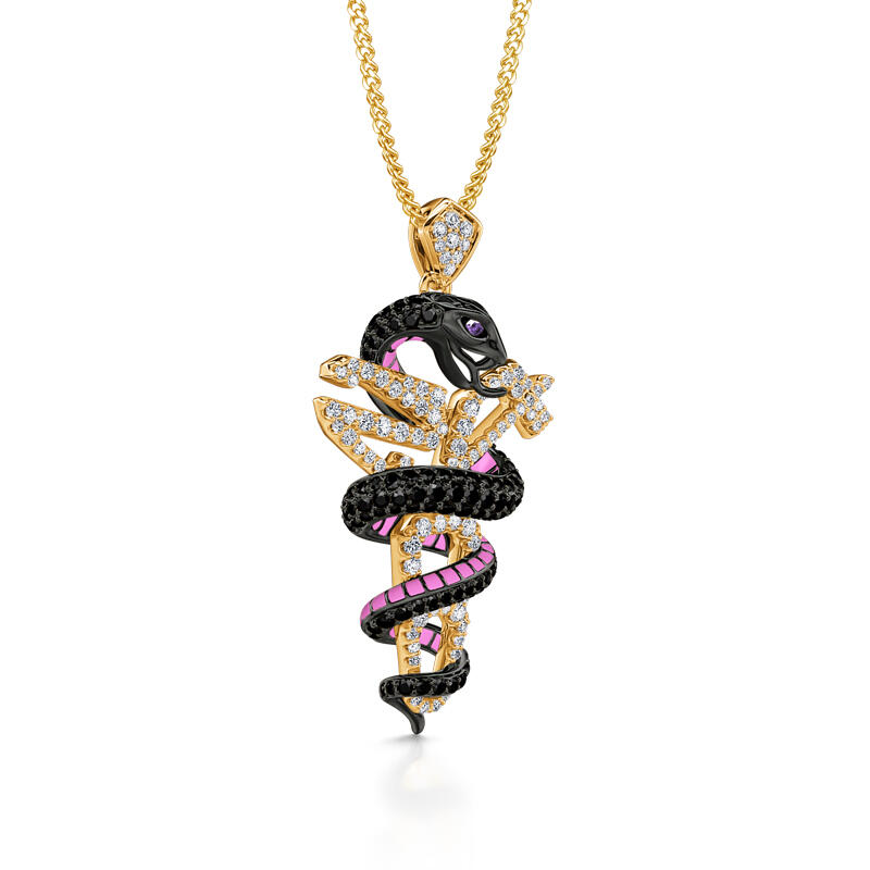 Black mamba, species of mamba snake known for its large size, quickness, and extremely potent venom. Mamba mentality is a spirit that never gives up. Standing for mamba mentality, this memorial necklace is the perfect keepsake to keep his memory forever. This piece is flooded with hand-set stones, to keep it shining from all angles. Bringing this new piece to your life today.