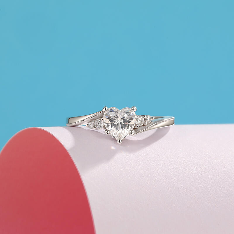 Jeulia Milgrain Custom Heart Promise Ring Bypass Design