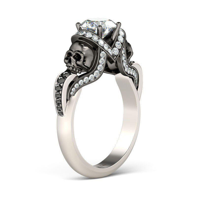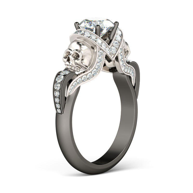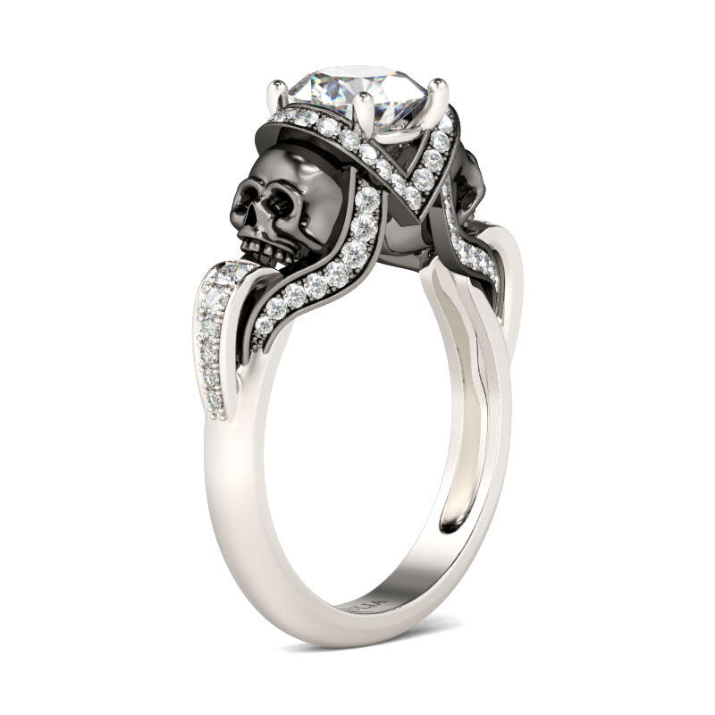 Jeulia Ribbon Round Cut Sterling Silver Skull Ring