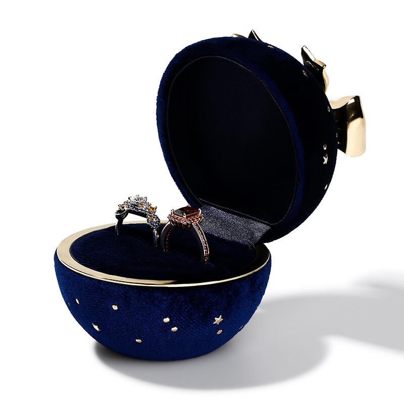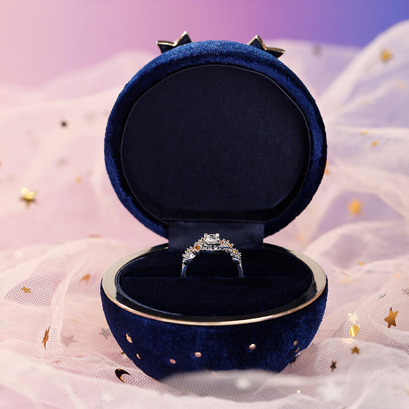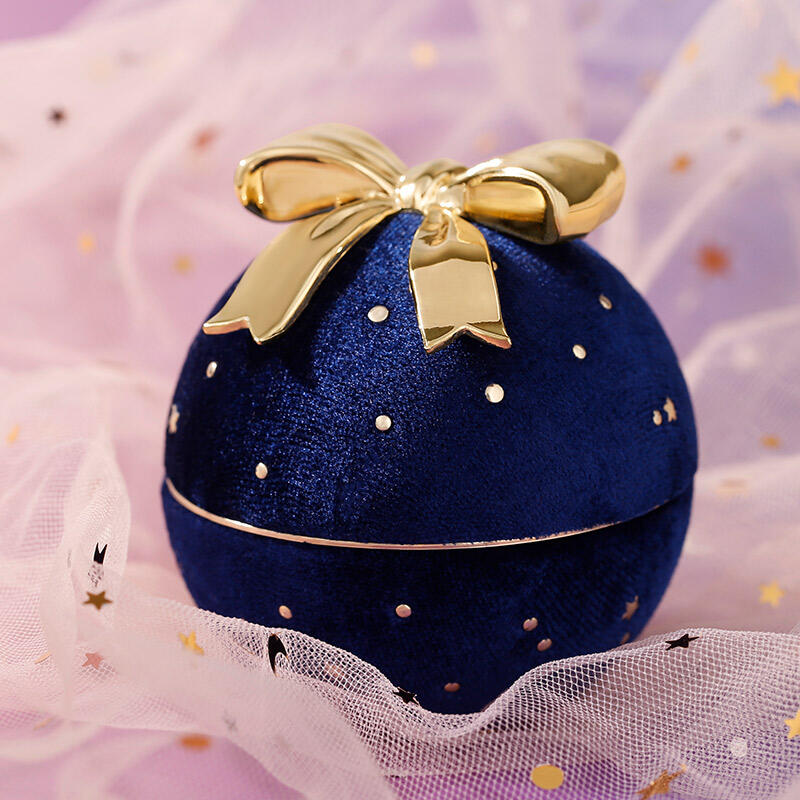 Jeulia Round Gypsophila Bow-knot Corduroy Ring Box