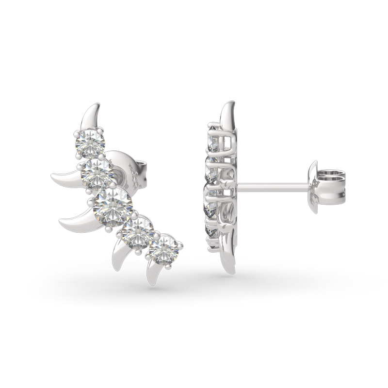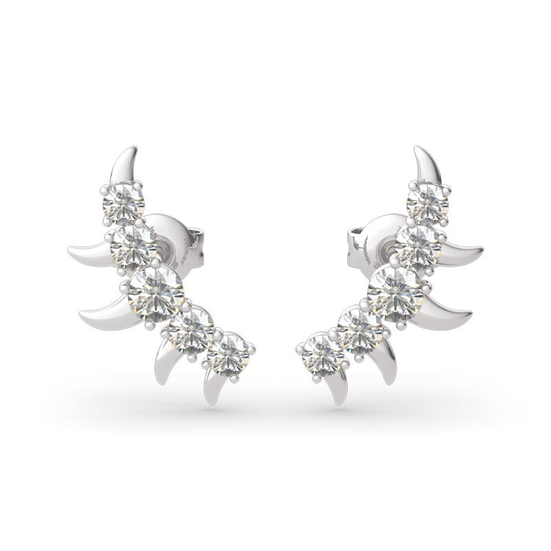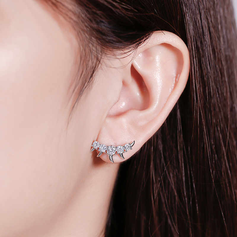 A hot trend she'll love, these sparkling earrings are sure to be a jewelry box favorite. Crafted in sterling silver, each earring features five spikes - every one lined in shimmering round cut stone - that work up the ear in a gentle curve. An eye-catching adornment, this unique spike design is a great anytime look.