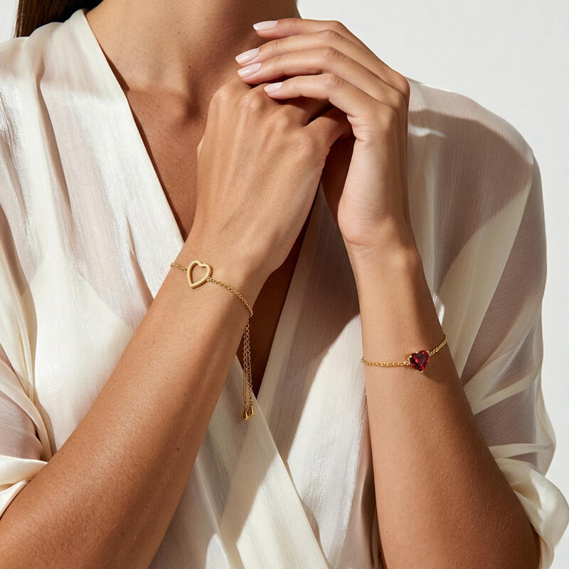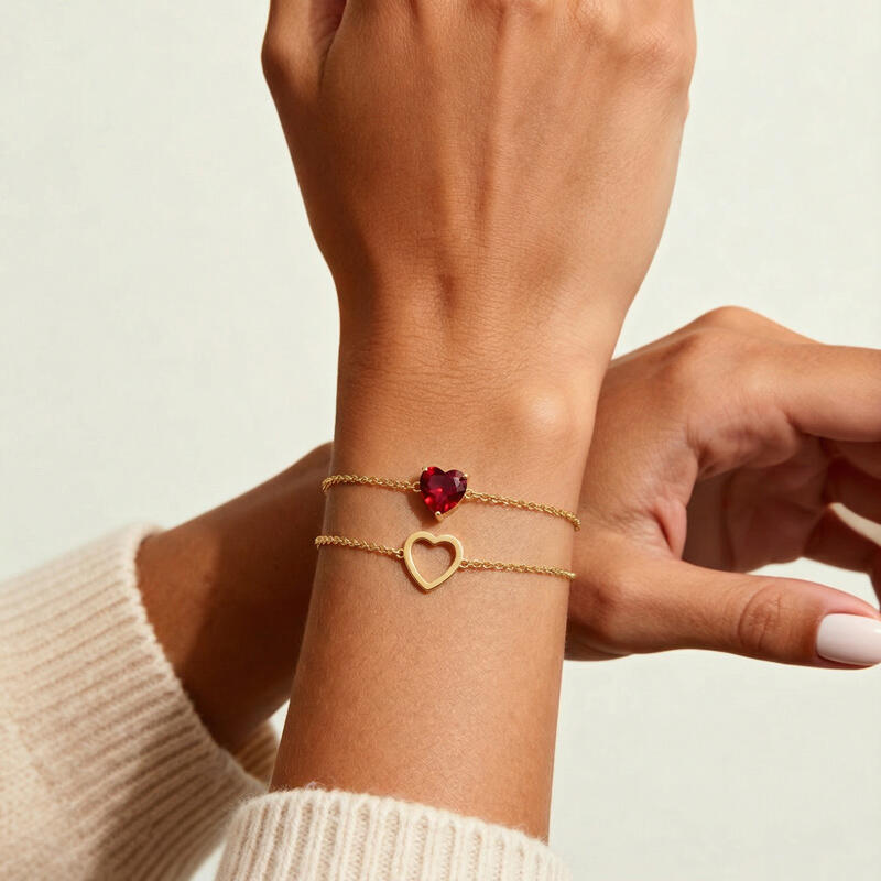 Embrace versatile charm with the Jeulia stackable double layer heart bolo bracelet set: a two-piece design featuring a cutout heart and a red heart stone, perfect for solo stacking or gifting as a friendship/mother-child pair. Adjustable bolo ties add practicality, blending sweet style with heartfelt connection—ideal for daily wear or meaningful bonding.