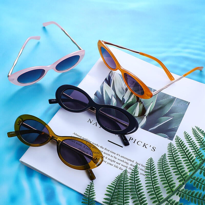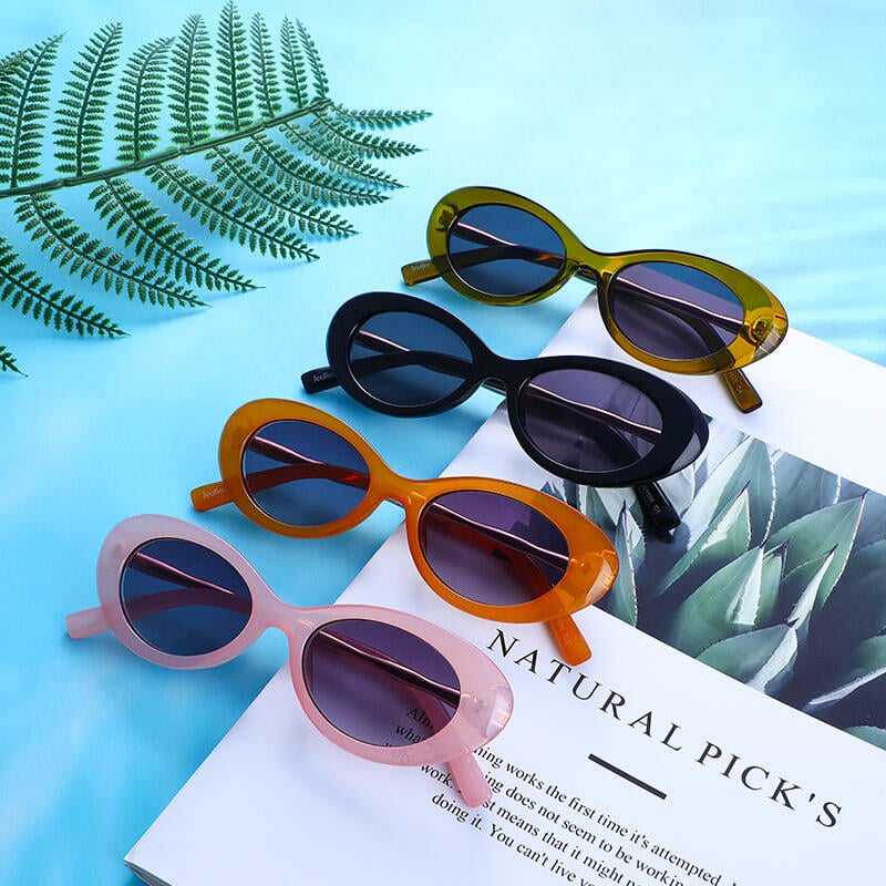 There’s no piece like these sunnies. Jeulia “Starlet” sunglasses help you be anything but ordinary! With elegant polished lines and solid/gradient grey lenses, this oval-shaped sunglasses display a refreshing feeling, adding feminine charm to your outfit. The UV400 lenses protect your eyes from strong glare when you are at the beach or driving or wandering in the city.