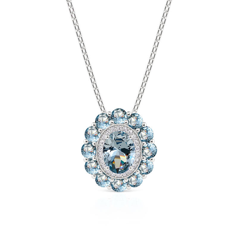 Evoke the serenity of a midsummer coast with the Jeulia summer seaside halo aquamarine necklace. At its heart, a pale aquamarine gem floats within a luminous halo of round blue sapphires—their soft gradients mirroring shallow tide pools under sunlit skies. Crafted to echo the fluidity of ocean waves, the pendant’s organic lines and polished finish capture the liquid sheen of sunlight dancing on calm seas. Let the aqua glow ripple across your skin like watercolor. This halo necklace isn’t just jewelry—it’s a wearable fragment of the seaside’s peace. Let this aquamarine pendant necklace be a daily reminder of sun, salt, and serenity—order yours to wear the summer seaside’s magic year - round.