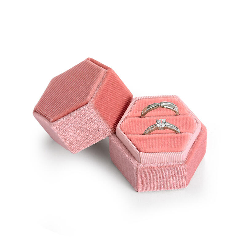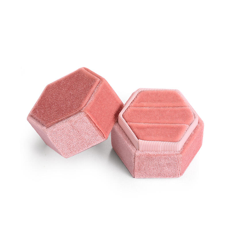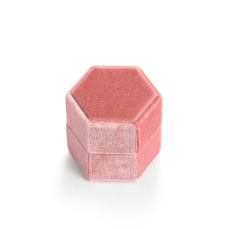 Jeulia Vintage Pink Velvet Hexagonal Couple Ring Box