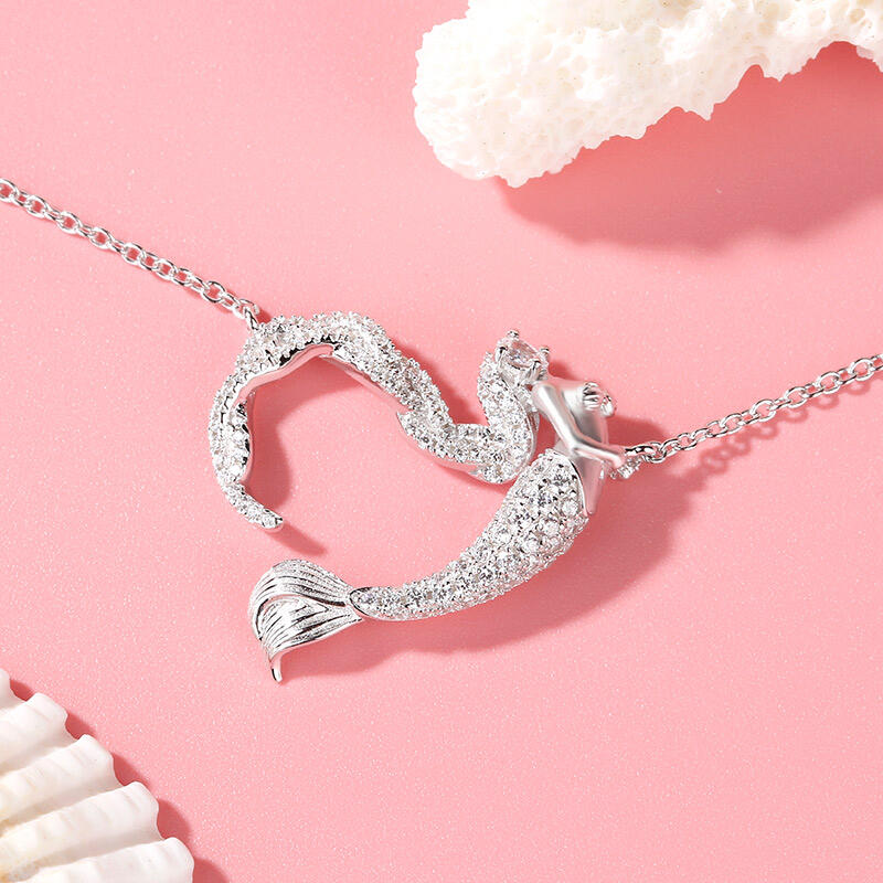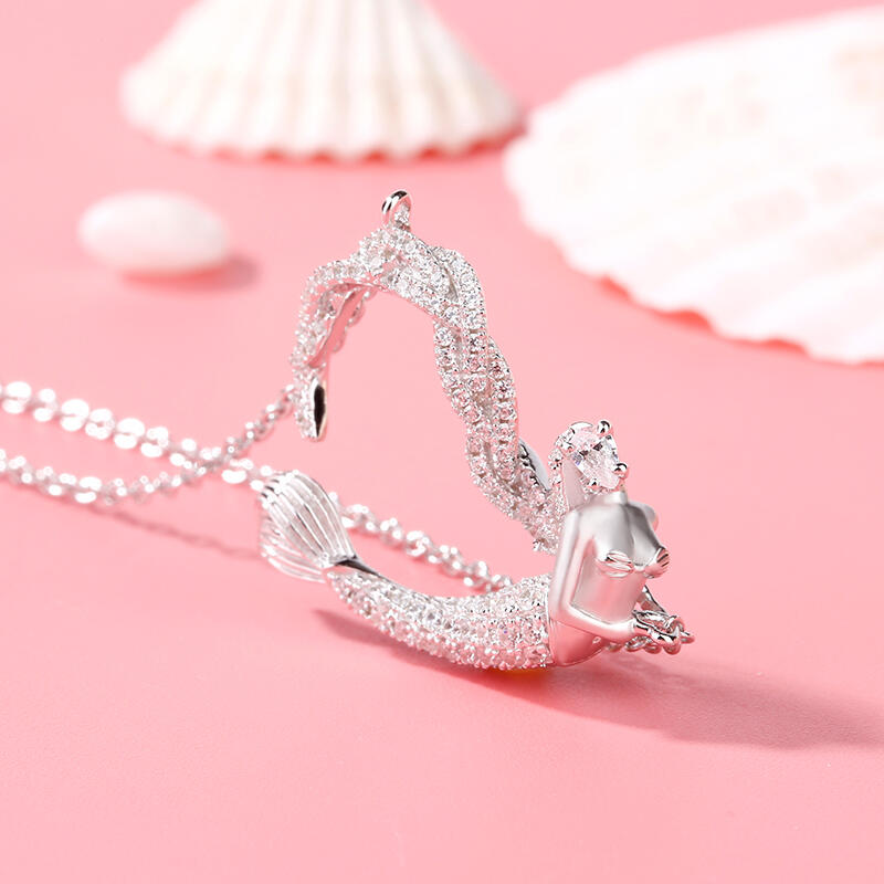 Jeulia "Ocean's Light" Sterling Silver Mermaid Gift Necklace for Valentine's Day
